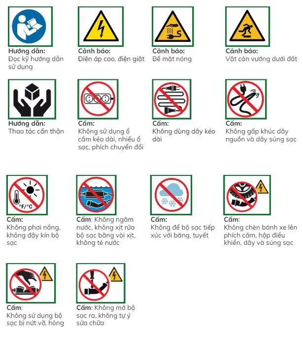 4.       Ý NGHĨA CÁC BIỂU TƯỢNG CẢNH BÁO KHI SỬ DỤNG BỘ SẠC DI ĐỘNG